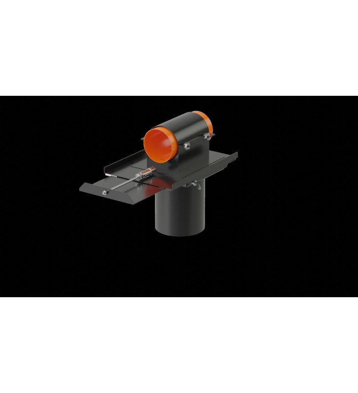 Salida cuadrada para colocar atornillada en cualquier punto del tubo. La tajadera permite la apertura y el cierre mediante accionamiento hidráulico de la salida. D = 127 mm.