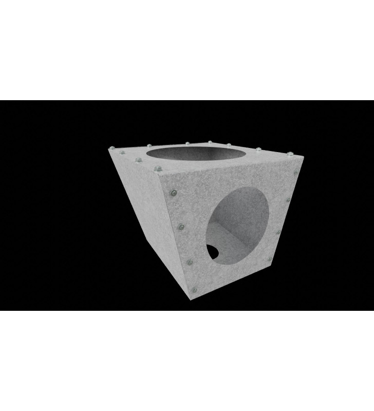 Cajetín con amarre estándar para colocar un sinfín a la salida de un silo ganadero de salida vertical. Terminación GALVA. Diámetro = 100 mm.