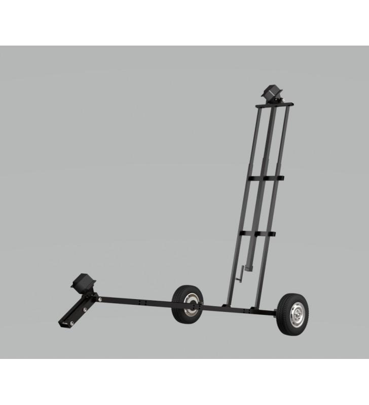 Carro para sinfín con regulación de altura mediante sistema de seguridad (sin cable) y neumáticos de gran tamaño que permiten un desplazamiento sin esfuerzo sobre cualquier superficie. Terminación: pintura epoxy. D = 127 mm.